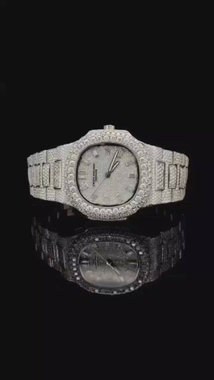 Silver Tone PP Nautilus Watch Studded | VVS Moissanite Diamond